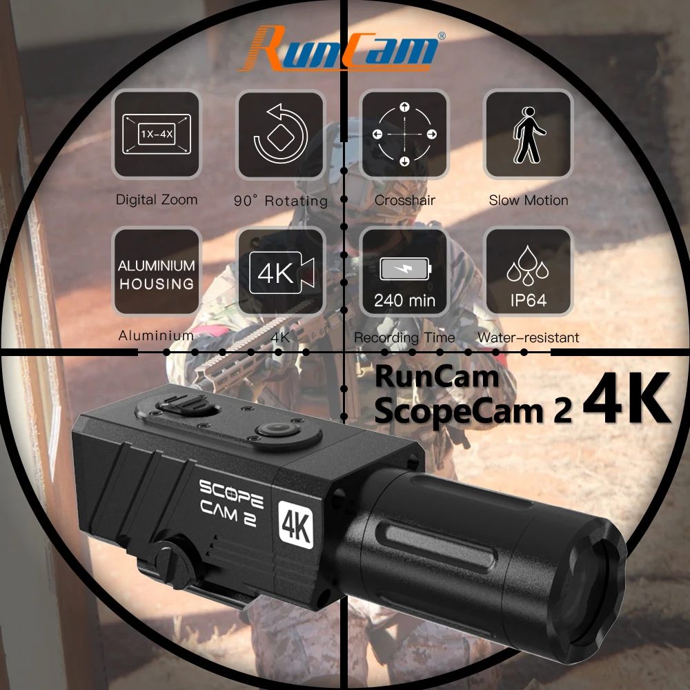 Special Offer RunCam Umfang Cam 2 4K Airsoft Kamera Digital Zoom Angepasst Fadenkreuz IP64 Wasserdichte Paintball Jagd APP 1400mAh 128G Discount 0% Today!